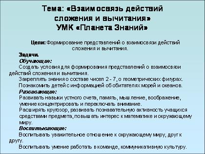 Думаем, а нужна ли эта информация детям? Нет. Кому нужна? Коллегам? Если открытый урок, то возможно, но презентация создается не для коллег, а в качестве иллюстративного ряда к уроку для детей. Значит, оставляем тему, цели и задачи в конспекте для коллег, в презентации для детей они не нужны.