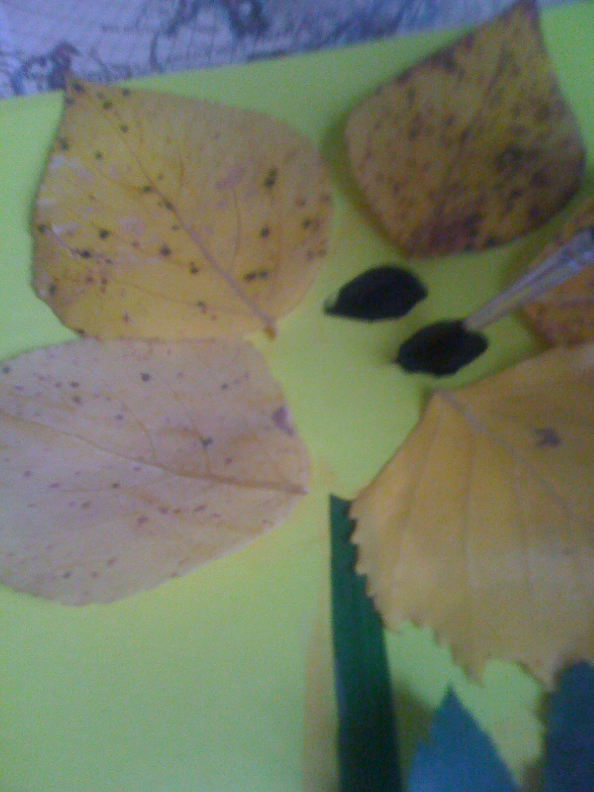 Что нужно приготовить: листья и травинку, цветной картон, клей ПВА, кисточка или палочка для клея, крупный бисер любого цвета, ножницы, краски.