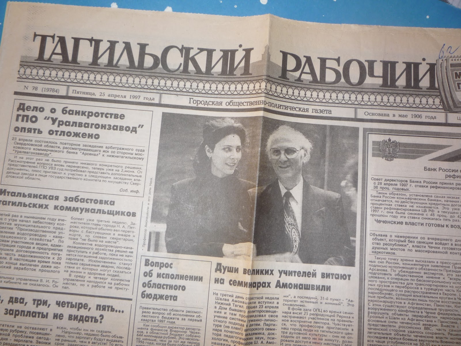 В теперь уже далёком 1997 году Шалва Александрович приезжал в наш город. И мне просто сказочно повезло, потому что я была участником семинара по системе гуманно-личностного подхода. Сохранилась газета, сейчас уже исторический документ!