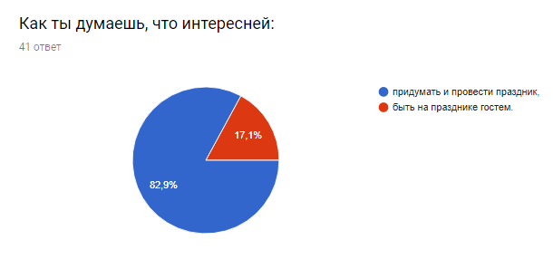 В опросе принял участие 41 человек. Большая часть респондентов считают, что гораздо интересней придумывать и проводить праздники.